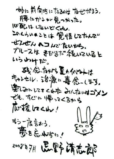 清志郎公式ホームページに掲載された清志郎のメッセージです。